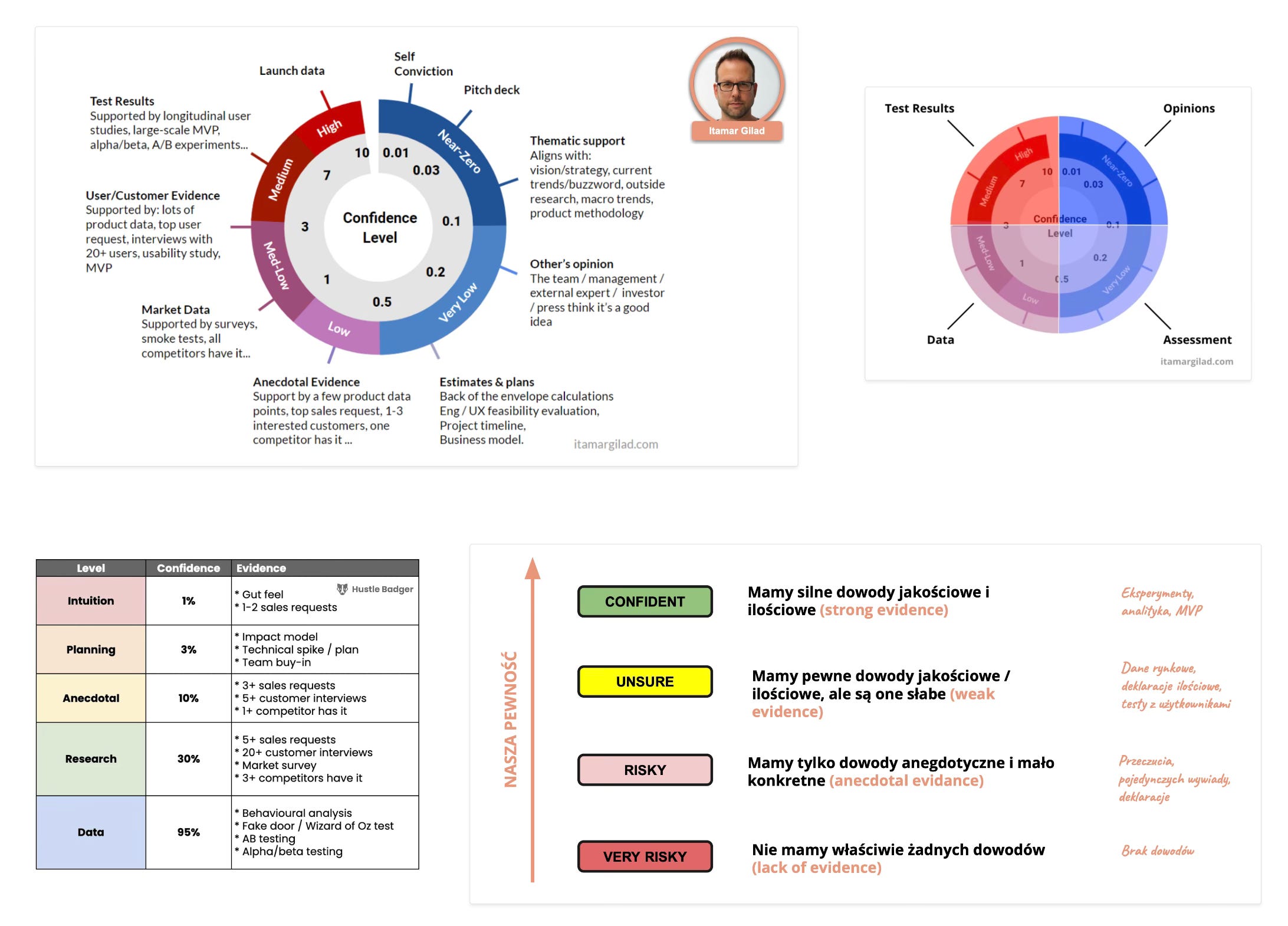 🖤 WYSOKA PEWNOŚĆ - dopiero gdy masz badania ilościowe, eksperymenty, wypuszczone MVP i analizę danych, możesz mówić, że założenia mają solidne wsparcie.