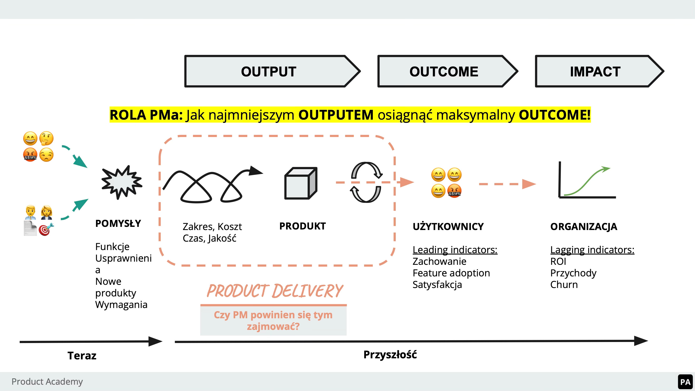 Słaba praca nad outputami przekłada się na słabą pracę nad outcome’ami – a to wprost wpływa na szansę sukcesu produktu i na to, jak ja jako PM jestem postrzegany (i jaki mam realny wpływ).