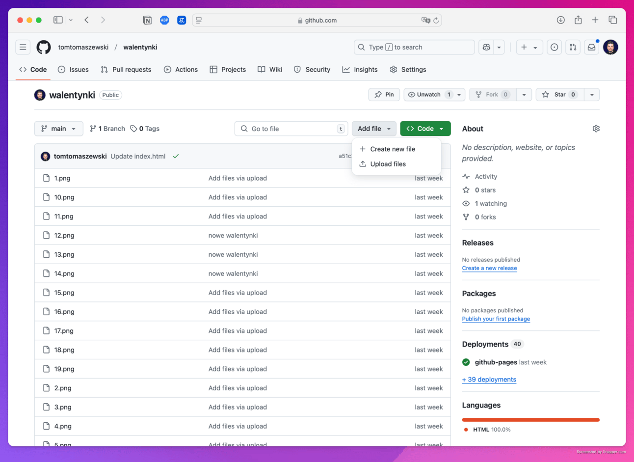 Jesteś doświadczonym web developerem. Czy można do strony dodać przycisk, który zapisze wygenerowaną walentynkę do pliku graficznego (z tekstem)? Jeśli tak, wygeneruj plik wyjściowy.Chat odpisał, że jest taka opcja i od razu umieścił ją w pliku.