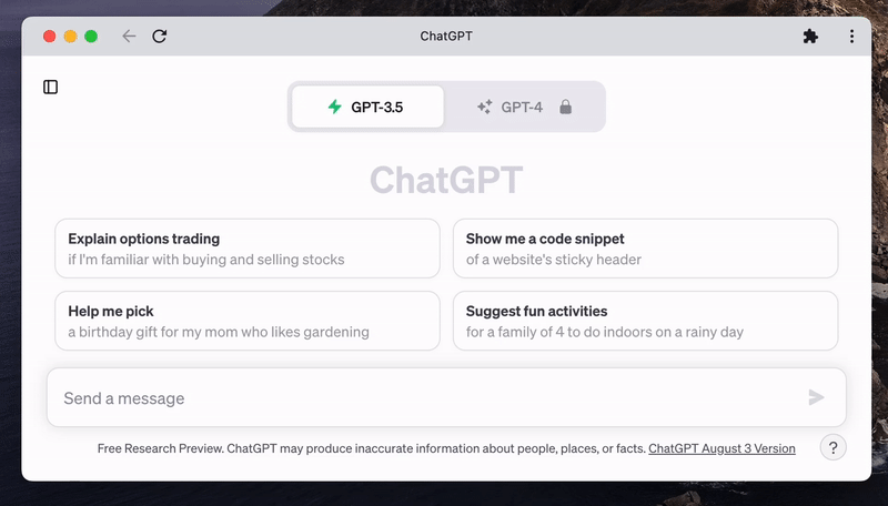 gdy mogłem to korzystałem z wersji 4.0 modelu ChatGPT. Daje lepsze odpowiedzi (większy model), ale za to ograniczenie do 25 wiadomości na 3h. Testowałem i używałem też standardową wersję 3.5 (szybsza i bez ograniczeń).