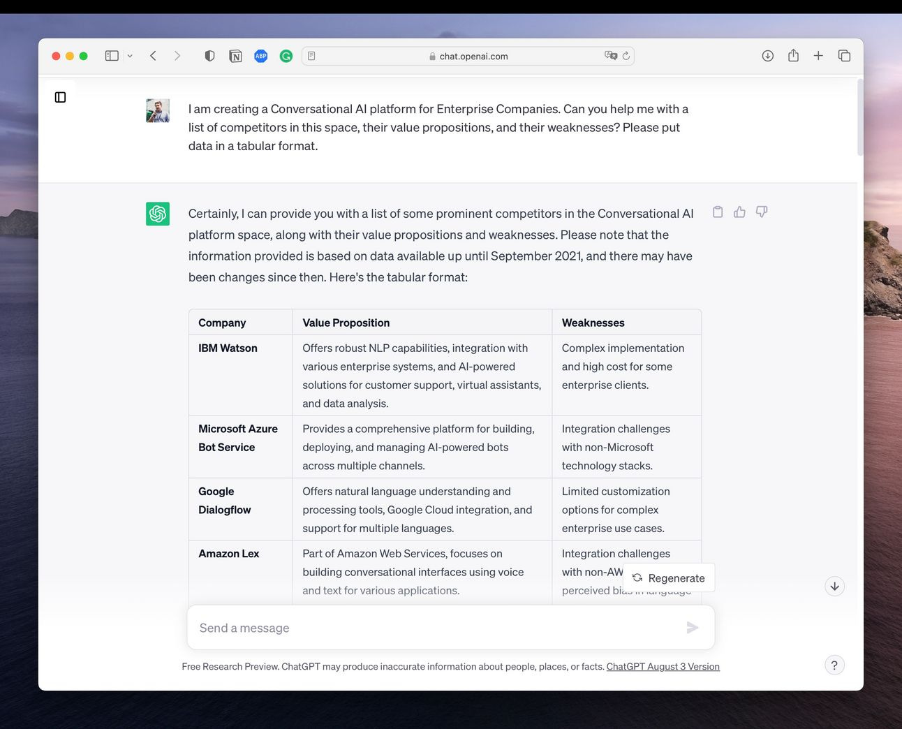 W czerwcu przyjmowaliśmy nowego product managera do firmy. W maju chciałem sobie odświeżyć analizę konkurencji, by opowiedzieć nowemu PMowi o naszych rywalach. Zamiast samodzielnie robić desk research, postanowiłem wykorzystać do tego mojego nowego asystenta.