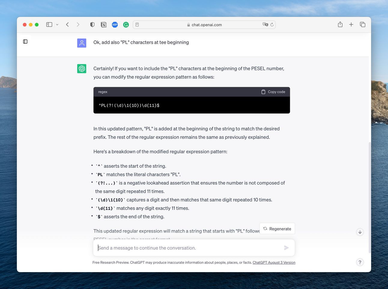 ChatGPT niejednokrotnie pomógł mi zrozumieć gotowy albo napisać własny fragment kodu m.in. konkretne wyrażenia regularne (np. na konkretny format liczbowy), SQL do wyciągnięcia informacji z bazy danych, czy prosty request do API.