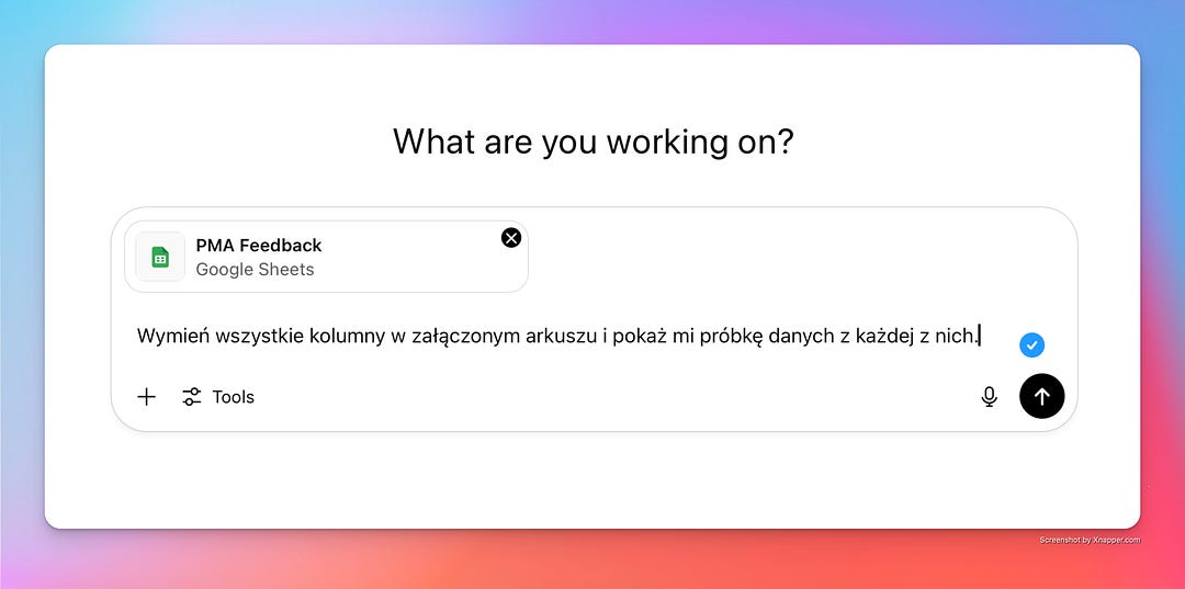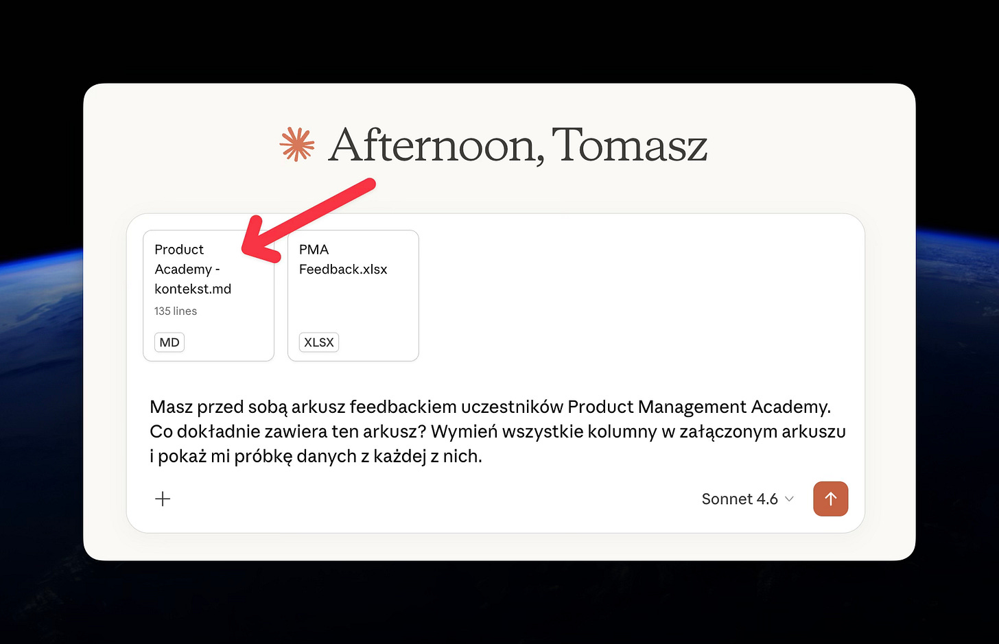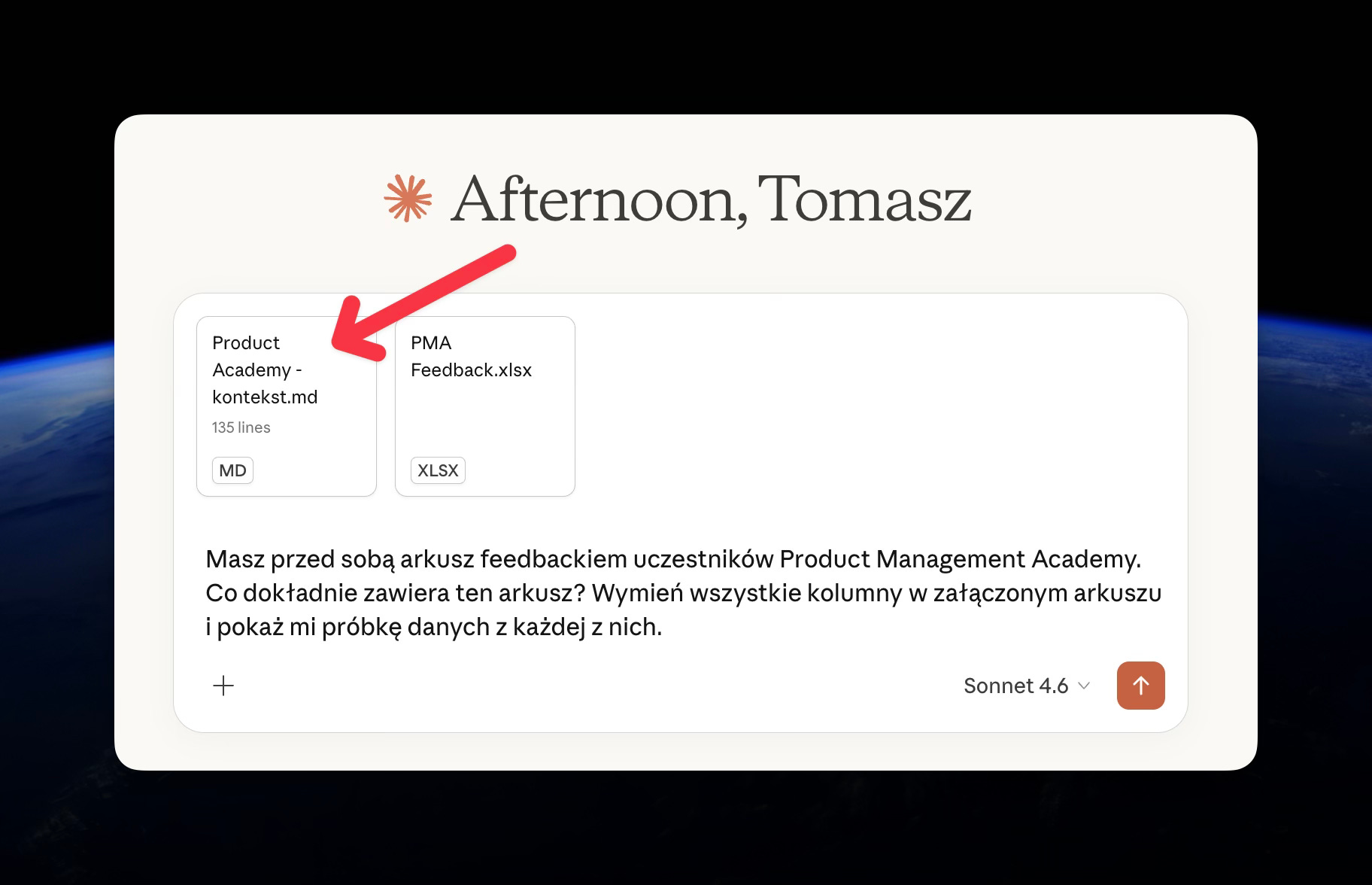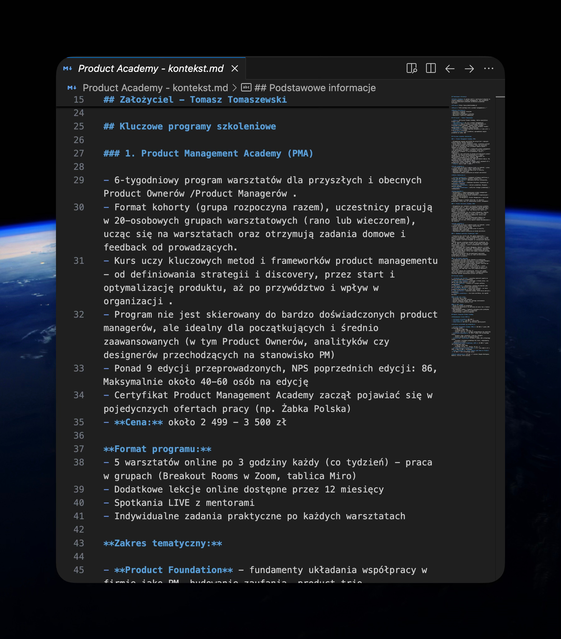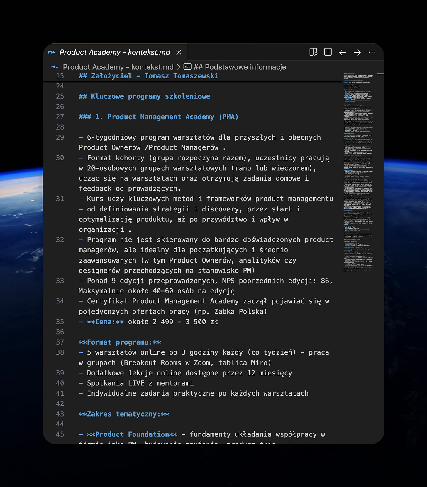Dlatego zawsze mam pod ręką plik z kontekstem produktowym - który może AI wykorzystać. Można oczywiście na stałe wrzucić go w funkcje projektów swojego asystenta.