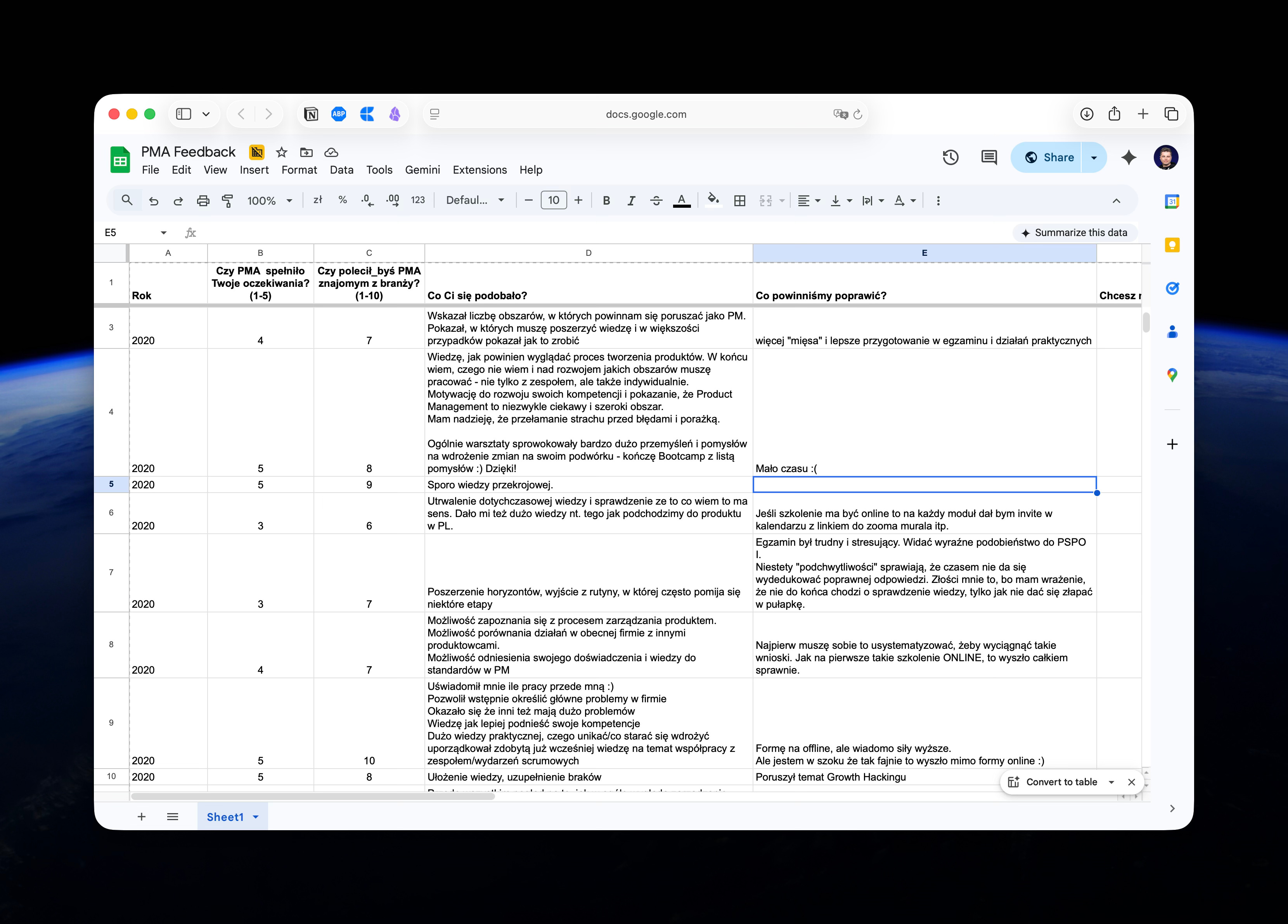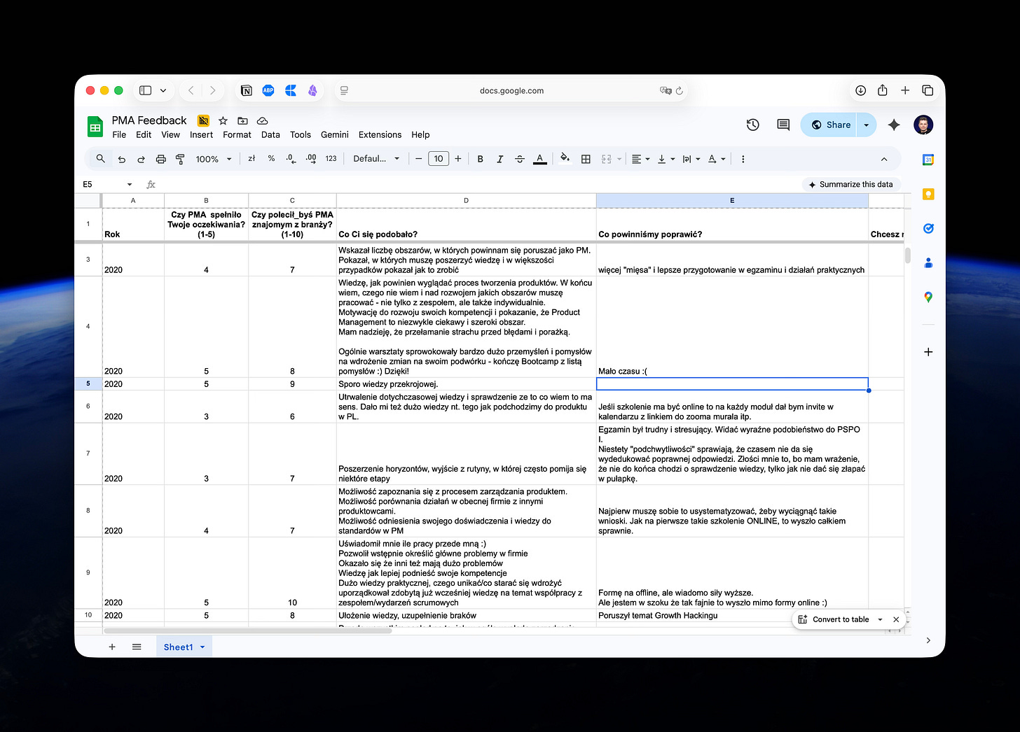 Niedawno zakończyliśmy 10 edycję Product Management Academy, czyli naszego flagowego programu szkoleniowego w Product Academy. Po każdej edycji robimy ankietę ewaluacyjną, żeby móc usprawniać program. Ankieta jest przeprowadzana na ostatnich zajęciach każdej edycji. Uczestnicy mają 10-15 minut na uzupełnienie ankiety.