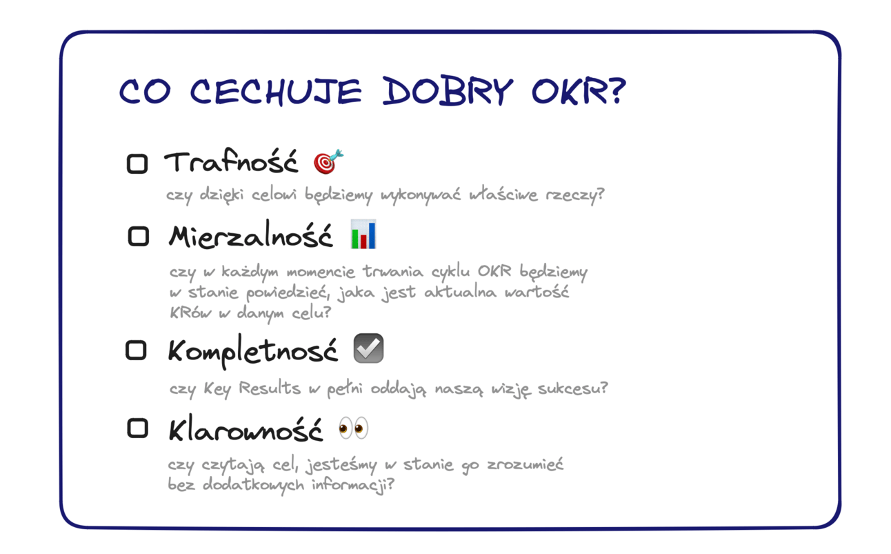☑️ kompletność - czy wybrane kryteria (Key Results) w pełni oddają naszą wizję sukcesu?