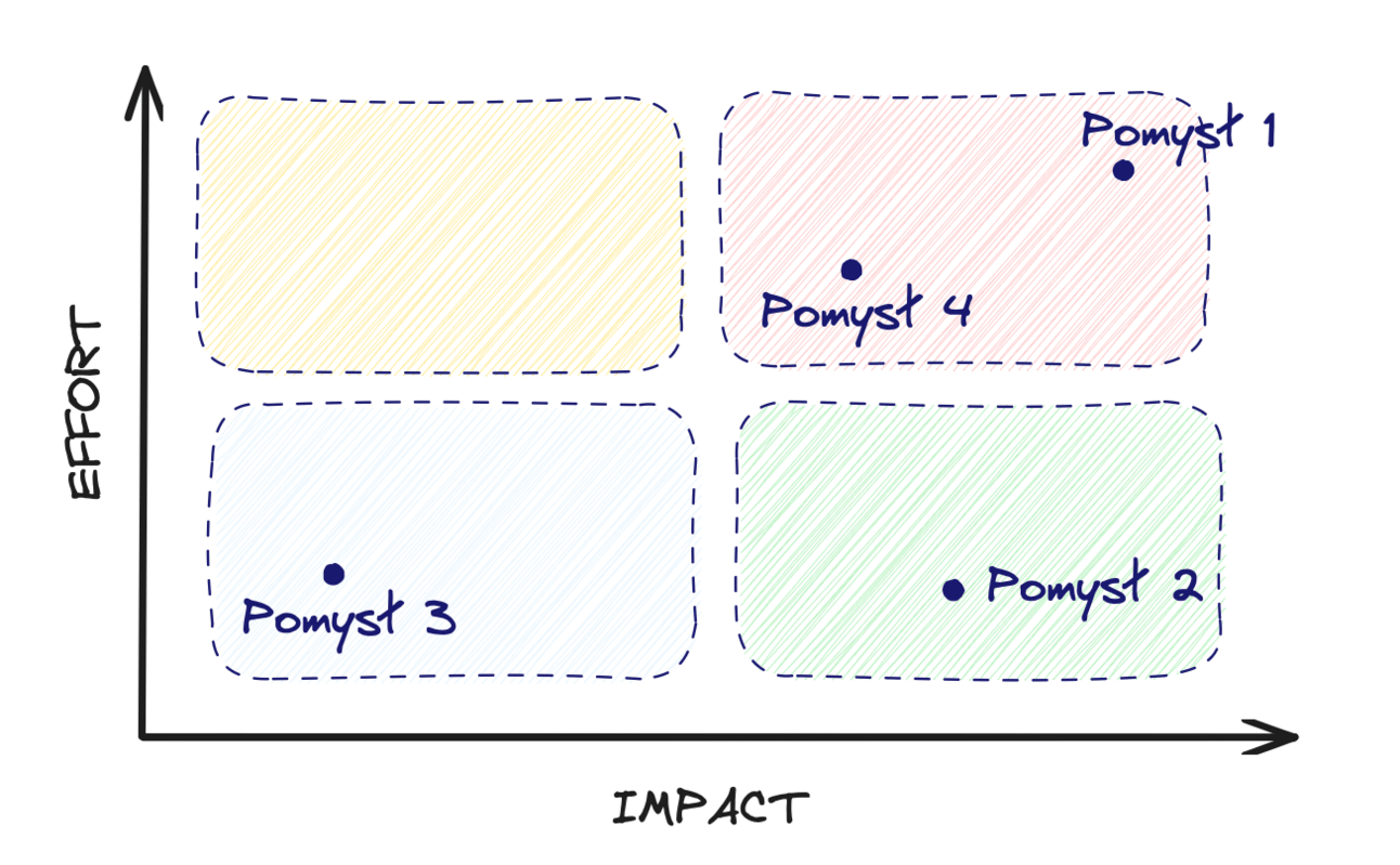 potencjalny wpływ (impact) pomysłu na naszą pierwotną intencję, możesz użyć np. macierzy Impact / Effort;