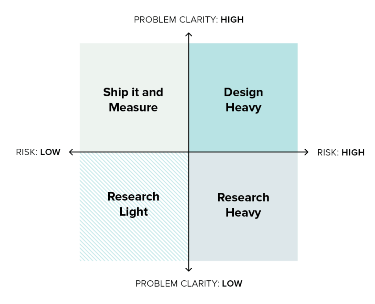 W dobrze “ile” i “jakie discovery” jest wystarczającego do konkretnej inciajtywy może Ci pomóc matryca Problem Clarity vs Risk: