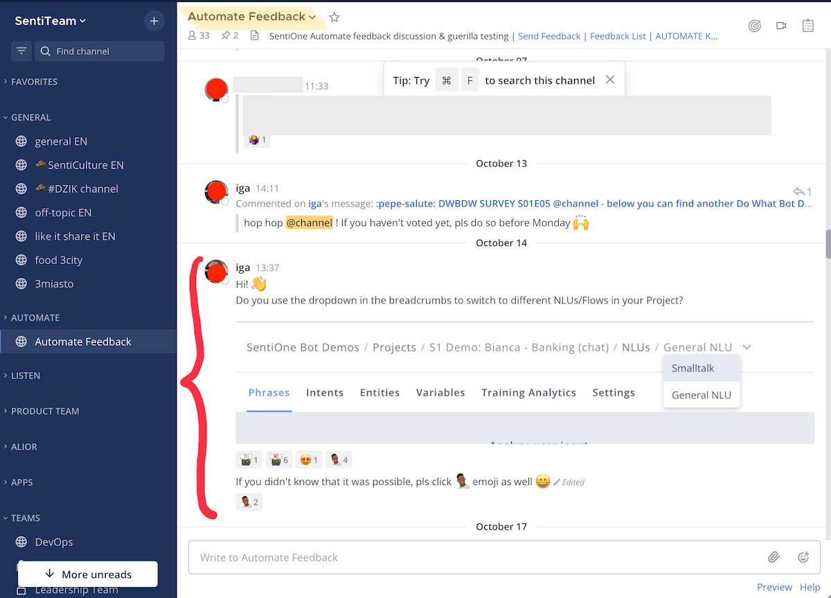 Kanał na Slacku do zbierania intuicyjnego feedbacku