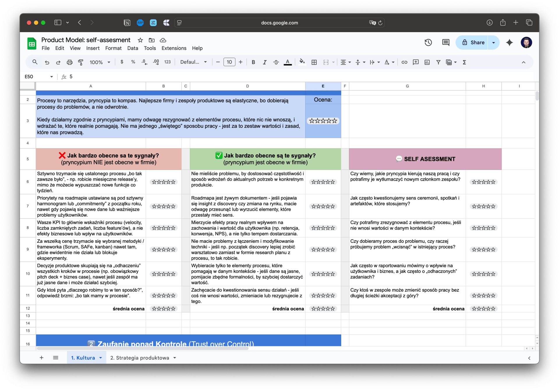 Przygotowałem w nim także praktyczny arkusz, który możesz użyć do obserwacji i samooceny stosowania pryncypiów w Twoim zespole: