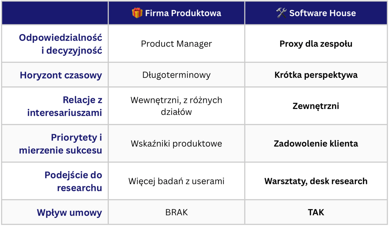 W software house od produktowca nie oczekuje się zwykle budowania długofalowej wizji czy strategii produktu. Proxy PO nie będzie zazwyczaj zanurzony w procesach sprzedażowych i marketingowych.