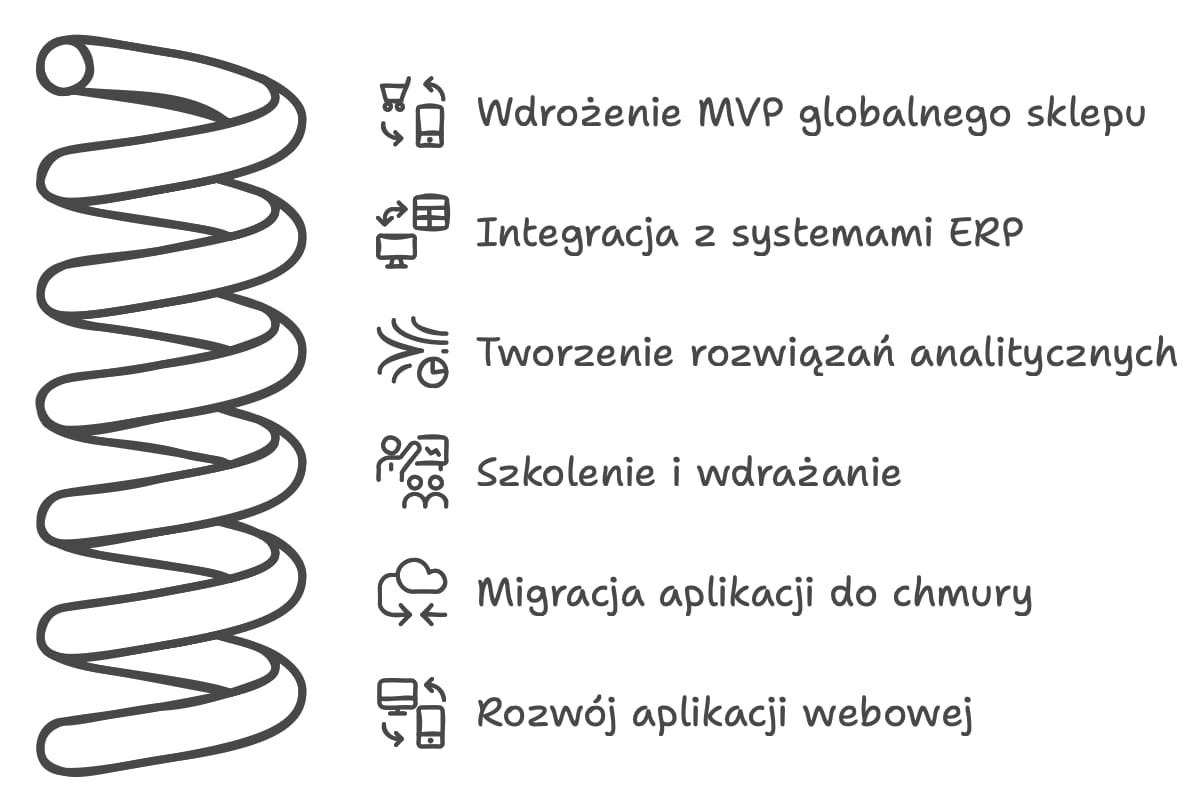 Na start chciałbym Ci pokazać nad czym miałem okazję pracować w ostatnich latach. Powinno to dać Ci dobry pogląd na to, czym taki Proxy PO się może zajmować. U mnie była to praca dla klientów z różnych branż, gdzie jako Product Owner byłem odpowiedzialny m.in. za następujące obszary: