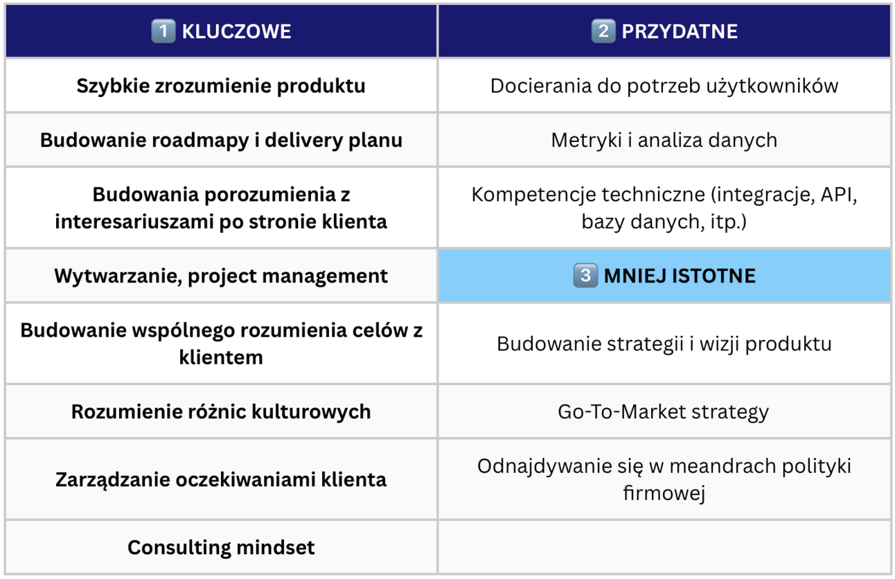 To na co kładziony będzie nacisk, to umiejętności w obszarze współpracy, zarówno w ramach samej organizacji klienta, jak i zespołu deweloperskiego, szeroko rozumianego delivery oraz kompetencje w zakresie identyfikowania potrzeb i dostarczania optymalnej wartości.