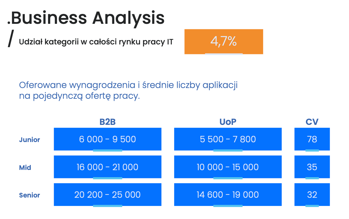 Z ostatniego raportu „Rynek pracy IT 2024/2025” w No Fluff Jobs, wynika, że widełki w tych rolach na poziomie regular to 15 - 22 tys. zł netto na umowie B2B.