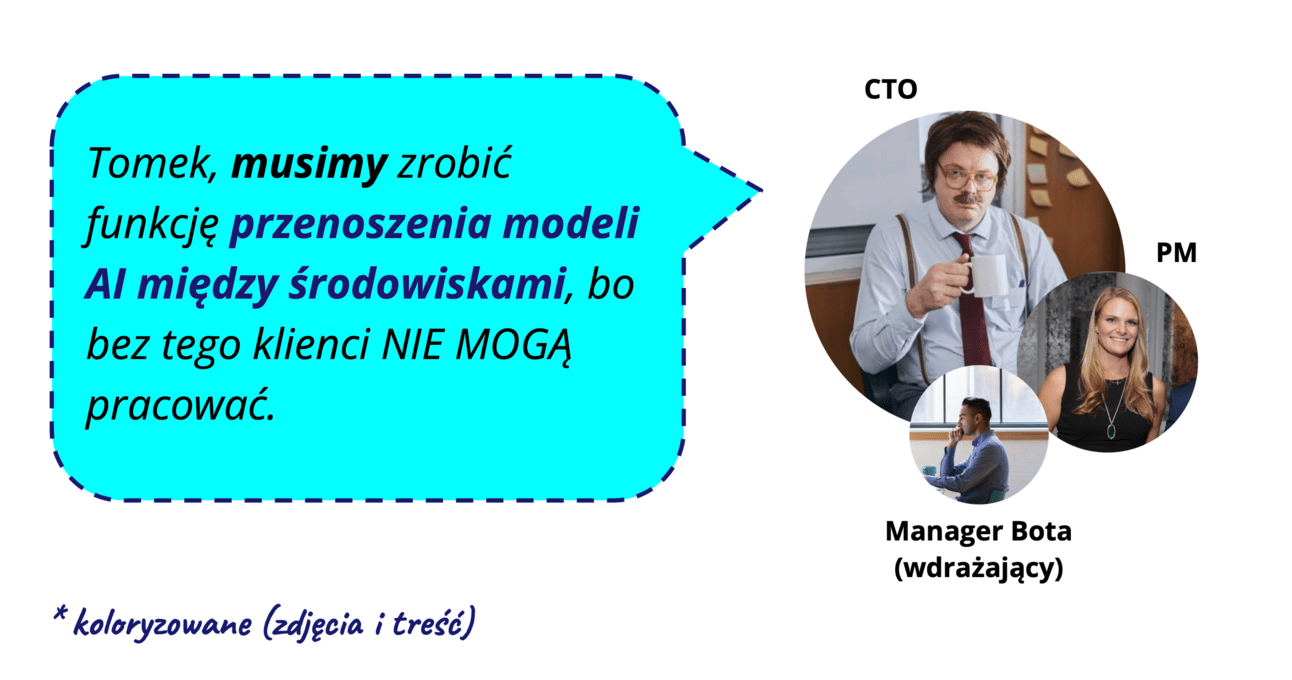 W naszym przypadku wprowadzenie opcji przenoszenia modeli AI wydawało się słuszne, ale tylko na pierwszy rzut oka. Dopiero dogłębne rozmowy ujawniły prawdziwe bolączki związane z procesem i dużo lepsze rozwiązania