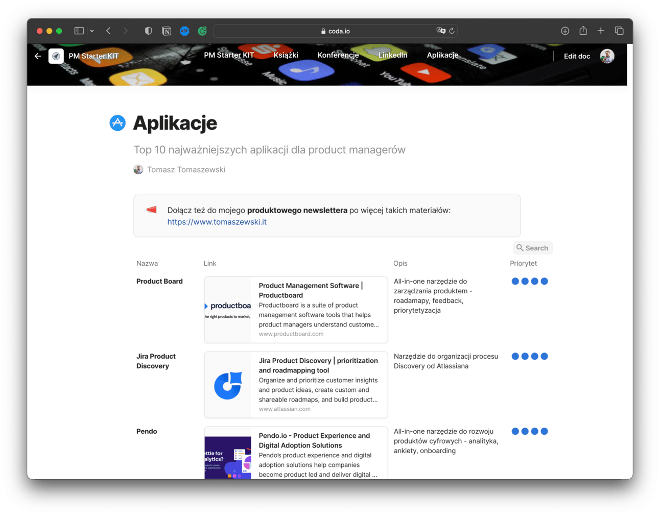 W wersji 1.1 uzupełniłem bazę materiałów o 10 moim zdaniem najważniejszych aplikacji dla product managera: