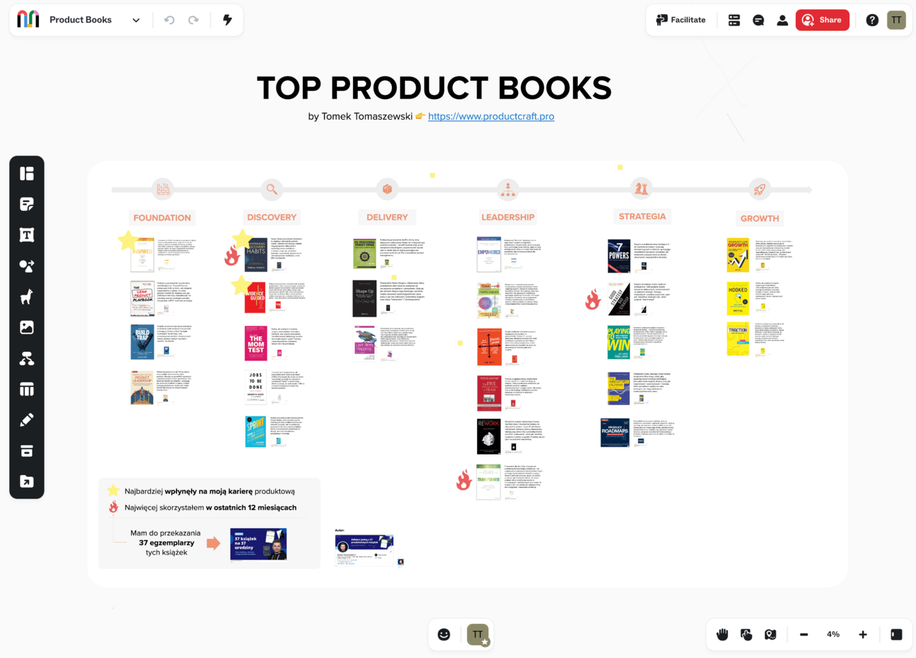KATEGORIE: Książki pogrupowałem tematycznie, żebyś łatwo znalazł to, czego potrzebujesz: Foundation, Discovery, Delivery, Leadership, Strategia, Growth.